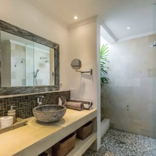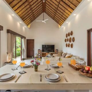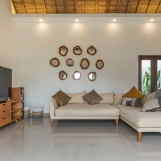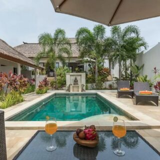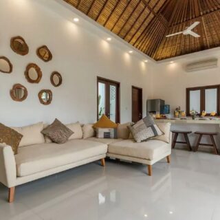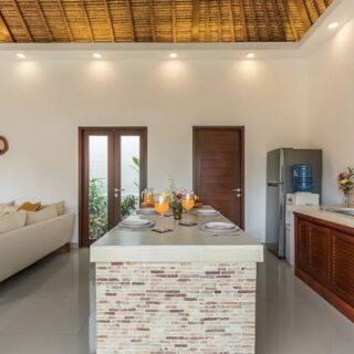 Krásná světlá tříložnicová vila se soukromým bazénem, kuchyní a kompletním vybavením je pár minut od místních trhů, kaváren, od supermarketu a na nejbližší pláže to je cca 10 minut skůtrem či autem. Nejbližší pláže jsou Melasti Beach nebo Balangan.